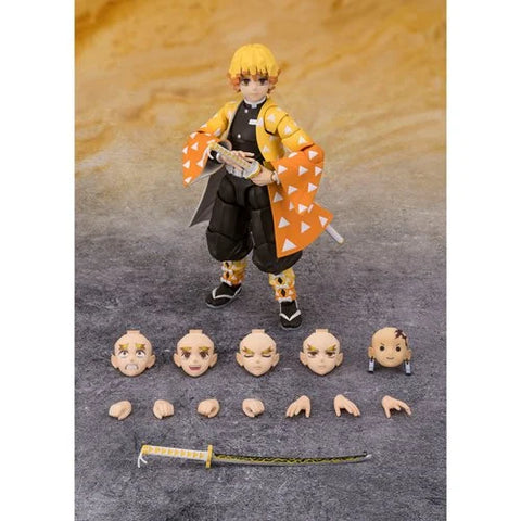 Zenitsu Agatsuma from Demon Slayer joins S.H.Figuarts! This Demon Slayer: Kimetsu No Yaiba Zenitsu Agatsuma S.H.Figuarts Action Figure measures approximately 5 1/2-inches tall. With its incredible range of motion, you can even recreate his "bolt flash" pose. He comes with interchangeable wrist parts (4x left / 3x right), 4x interchangeable facial parts, Nichirin sword, sheath, and interchangeable face part for S.H.Figuarts Kamado Tanjiro (sold separately). Add him to your collection!