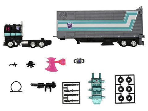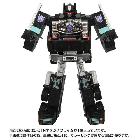 Decepticons join the Missing Link series in a retro form that imagines what they would have looked like had they been released with the Gen 1 line. C-01N Nemesis Prime is based on the C-01 Optimus Prime with a sleek black deco.