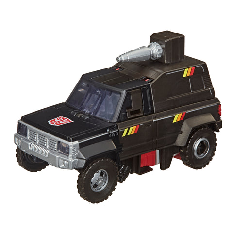 The good-humored Autobot defensive strategist, Trailbreaker, converts to classic camper truck mode in 18 steps. Includes a blaster accessory.
